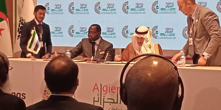 The Minister of Finance, Hon. Sheku Ahmed Fantamadi Bangura, and the Chairman of the Islamic Development Bank (IsDB), H.E. Dr. Muhammad Sulaiman Al Jasser also signs the Financing Agreement for the Livestock and Livelihood Development Project on Wednesday, 21st May 2025 in Algiers, Algeria on the 3rd day of the Annual Meeting of the IsDB.
