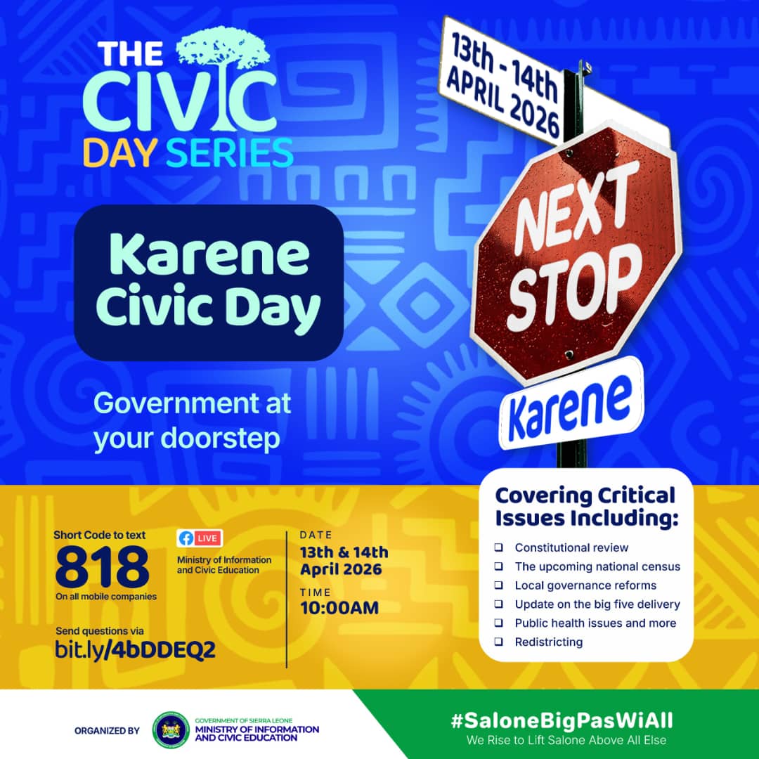 The Ministry of Information and Civic Education is set to take its flagship Civic Day Series to Karene District on the 13th and 14th of April 2026, as part of ongoing efforts to strengthen citizen engagement and promote inclusive governance across the country.