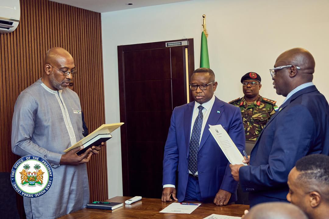 State House, Tower Hill, Freetown, Thursday November 27,2025—– Hours after his successful bipartisan approval at the House of Parliament, following his nomination as Minister of Energy earlier this month, Mr. Cyril A. Grant was at State House,where His Excellency President Dr Julius Maada Bio administered the Oath of Office to him.