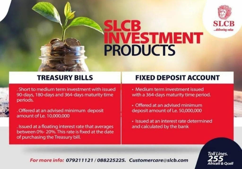 The newly introduced products include Treasury Bills and a Fixed Deposit Account, both designed to provide secure and rewarding investment opportunities for individuals, businesses, and institutions across Sierra Leone.