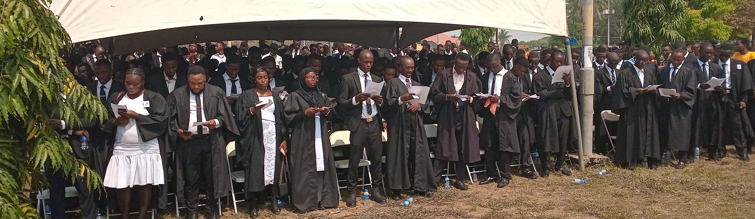 Highlights of the well-attended event were the Oath Taking presided over by Mr. Ishmael Kebbay, the Acting Head of Department, Social Studies, formal pronouncement of membership to the university by the Registrar, Mr. Bockarie Sillah, statement of felicitation by Ms. Aminata Bangura, Acting Dean of Campus, Brookfields, sample signing of the University Registrar by Mr. Bassie Bangura, the vote of thanks by a first year student, Mariama Bakarr and the singing of the University Song.